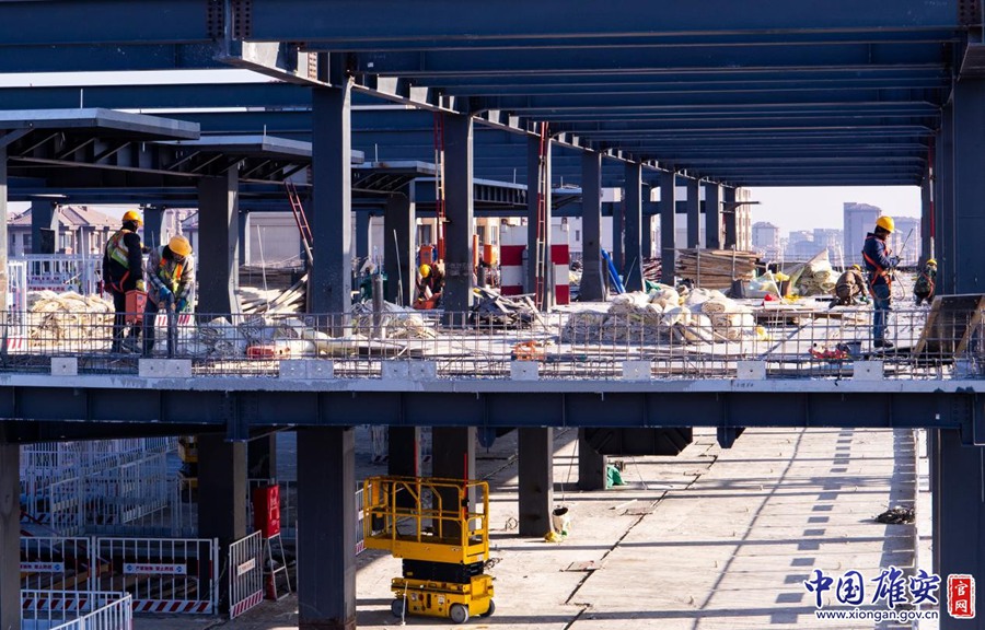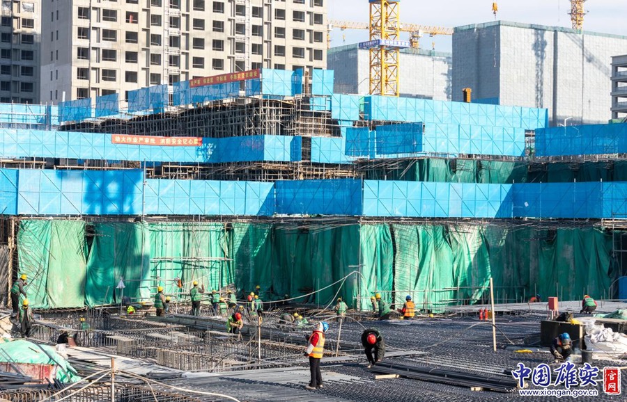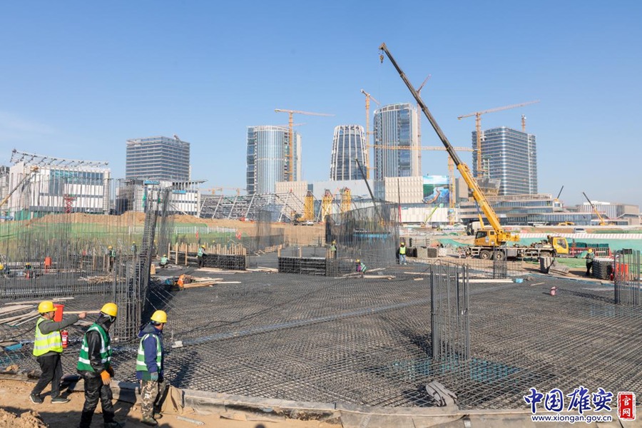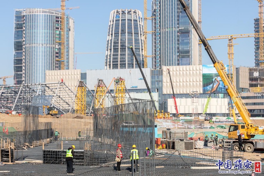 在雄安国贸中心建设现场,建设者正在进行作业。中国雄安官网李鑫 摄