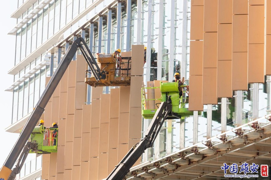 在容西工人文化宫项目建设现场,建设者正在进行作业。中国雄安官网发