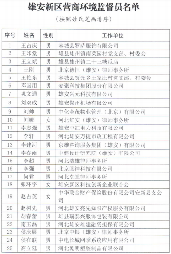 近日,雄安新区营商环境局召开营商环境监督员聘任会议,正式聘请来自人大代表、政协委员、行业协会商会、律师、新闻工作者等30名各界代表为营商环境监督员,并为监督员们颁发了聘书。