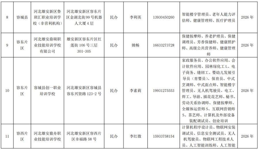 为深入实施“技能照亮前程”培训行动,推动雄安新区职业技能培训工作提质增效,促进高质量充分就业,经机构申报、评审认定、公示等程序,现将雄安新区2026年度首批定点职业培训机构目录予以公布。