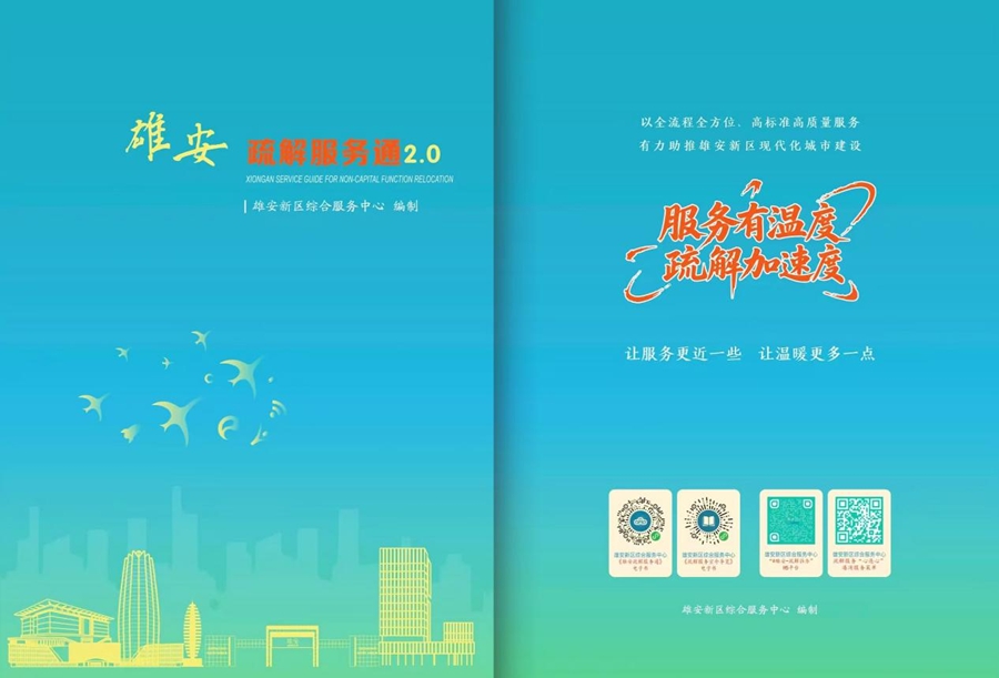 《雄安疏解服务通2.0》手册封面、封底。雄安新区综合服务中心供图