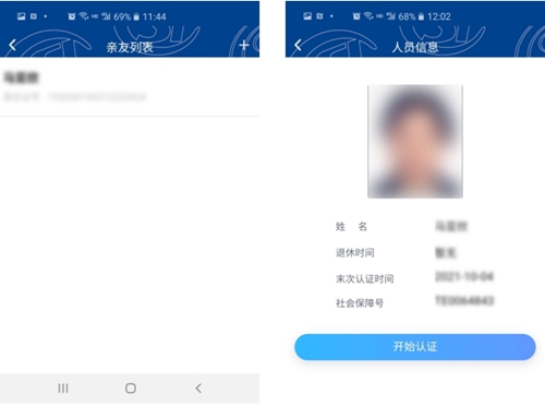 已经新增成功的亲友,直接点击列表中姓名,即可进入刷脸界面,按提示操作,即可完成认证。