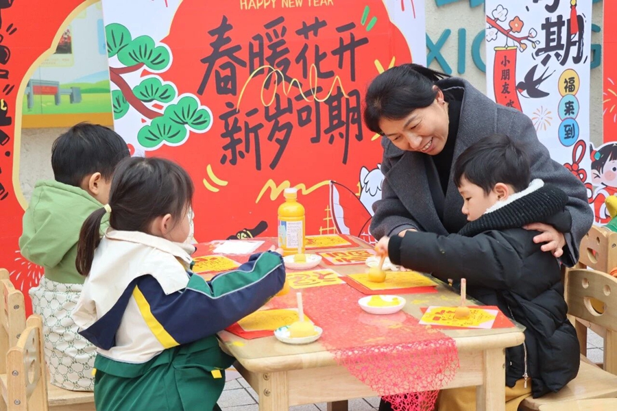 雄安容和朝晖幼儿园的老师带着孩子们拓印福字,开启福气满满的新学期。雄安容和朝晖幼儿园供图